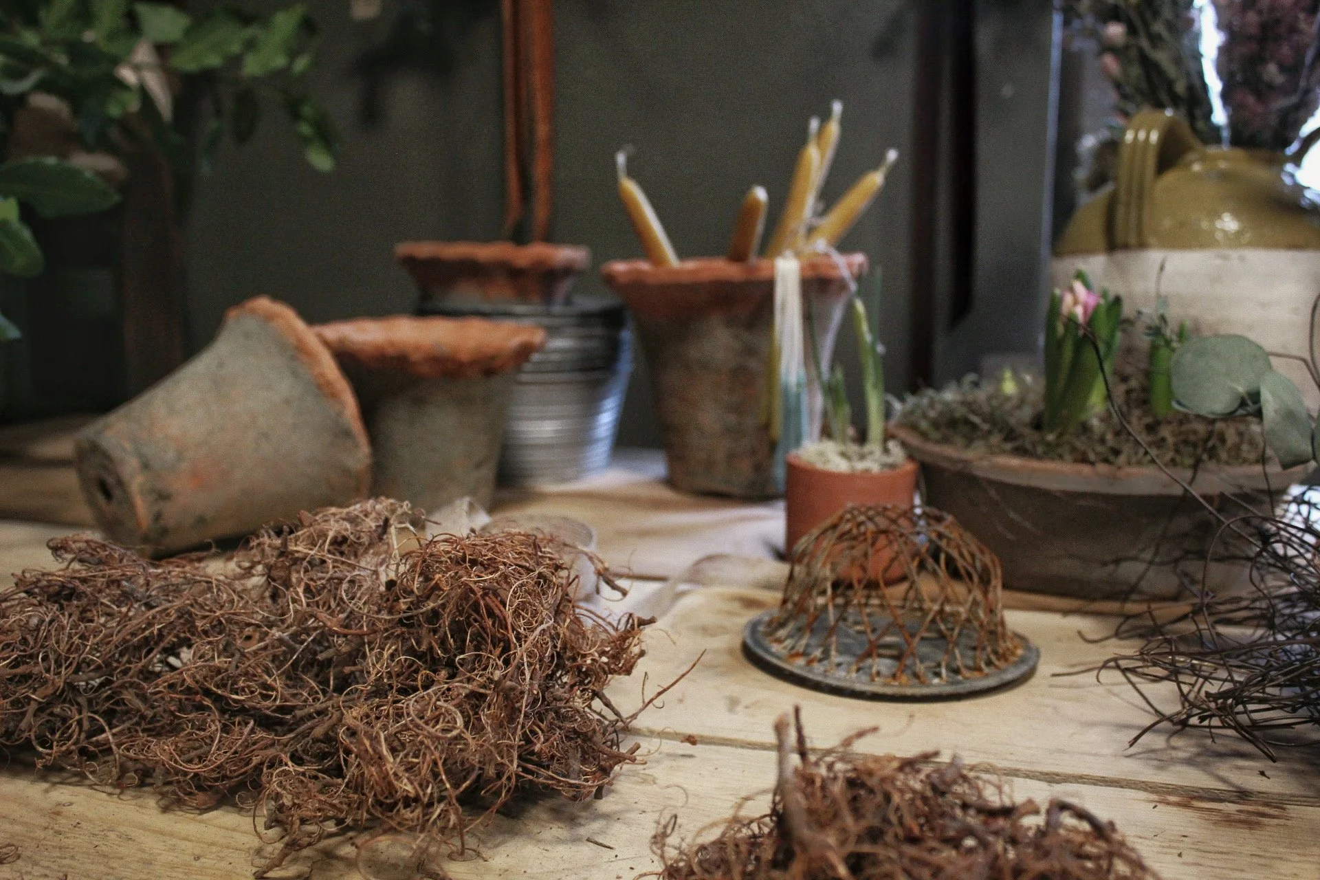 Materials are prepared, assembled and finished here. Some elements are grown, others are sourced seasonally and stored until they are ready to be used.