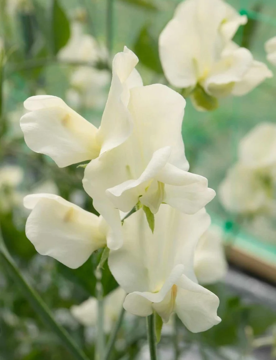 A soft cream background delicately highlighted with beautiful dusky pink picotee edging. This is truly one of the prettiest sweet peas to grow, and it has become a firm favourite in our garden here at the Wild Potager. It’s not only visually stunning but also much loved by pollinators, making it a valuable and charming addition to any seasonal flower collection.