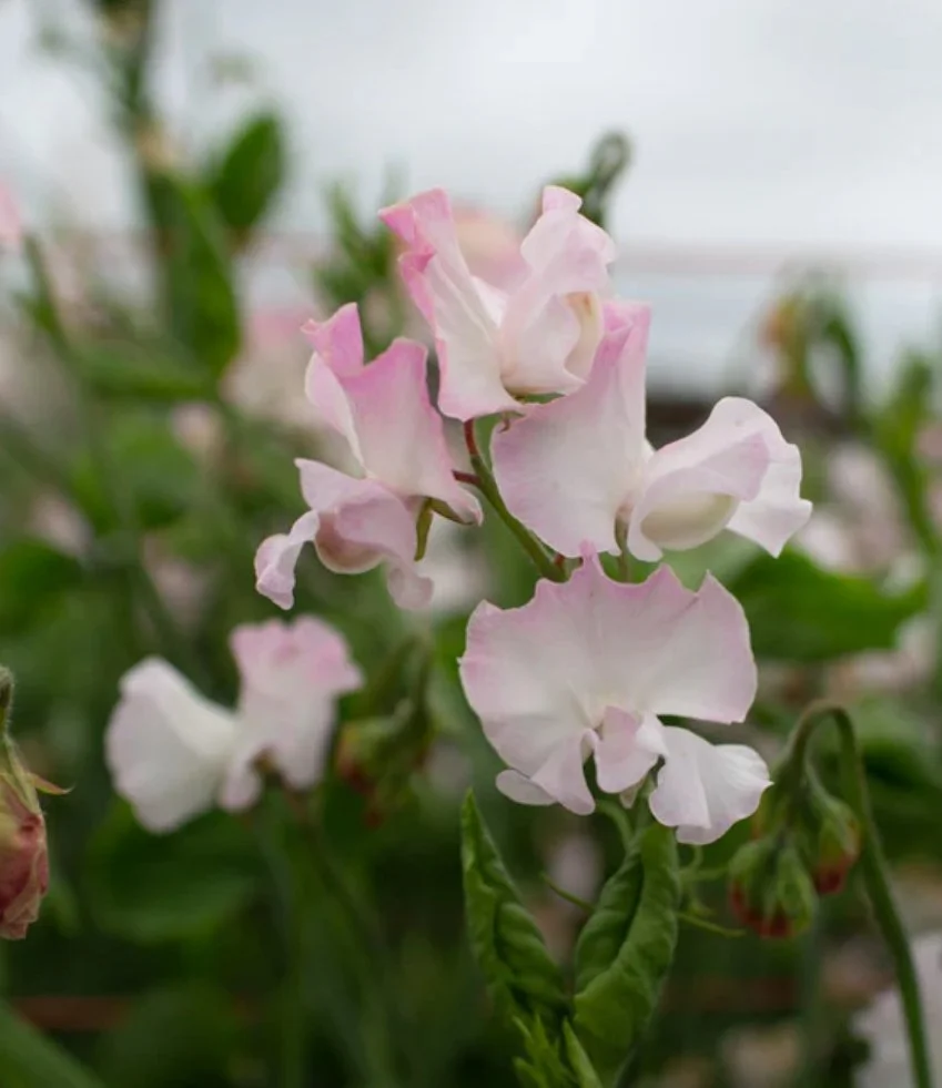The flowers display a soft, pastel apricot or peachy-blush hue, often beautifully blended with delicate shades of pink and cream. Their wavy petals add an elegant texture, and they grow on long, sturdy stems, making them ideal for cutting and arranging. This particular variety is well regarded for wedding floristry and special floral arrangements. It is a timeless classic in cottage gardens and cutting gardens alike, especially suited for creating romantic bouquets when gathered in generous bunches.